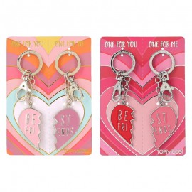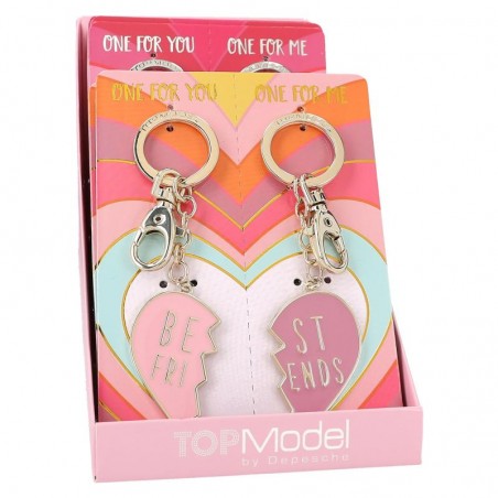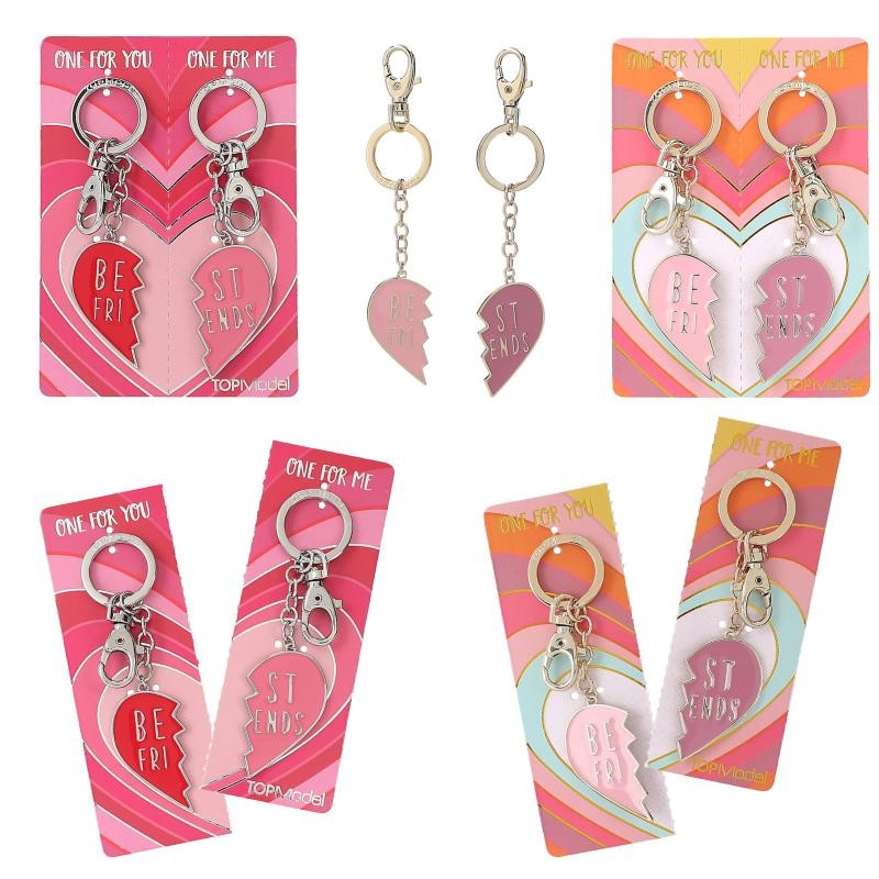 El llavero de TOPModel para las mejores amigas. Cada juego se compone de dos corazones partidos que se complementan perfectamente. Disponibles dos modelos de metal dorado o bien plateado y distintas tonalidades de rojos y rosa para los corazones.