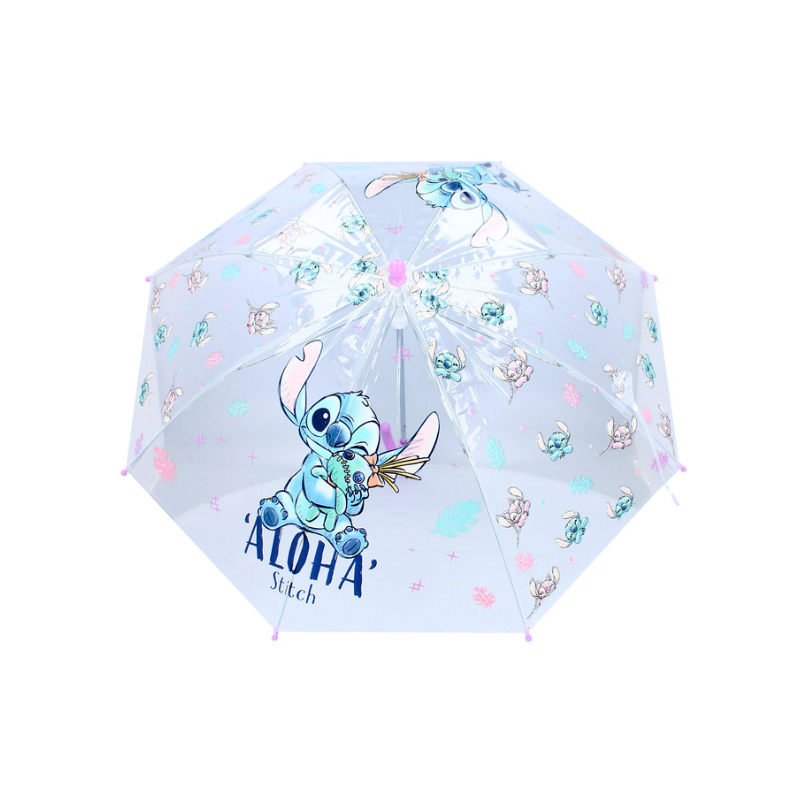 Te presentamos el paraguas de Stitch de la colección «Días de lluvia». Este paraguas transparente es perfecto para los fans de Lilo & Stitch que quieran llevar su caos cósmico favorito a sus aventuras cotidianas. Con detalles en rosa y alegres imágenes de Stitch en todo tipo de poses divertidas, este paraguas hace que los días de lluvia sean mucho más divertidos. El diseño transparente permite a niños y padres ver cómo cae la lluvia, mientras permanecen secos bajo el amplio diámetro del paraguas. La robusta construcción y la cómoda asa hacen que este paraguas sea fácil de llevar, incluso para manos pequeñas. Los detalles en rosa aportan un color suave, mientras que los dibujos de Stitch añaden un toque juguetón que gusta tanto a niños como a mayores. Añada este encantador paraguas de Stitch de la colección «Rainy Days» a su surtido y ofrezca a sus clientes un producto tan práctico como divertido. Ya sea para el colegio, una excursión o un paseo bajo la lluvia, este paraguas garantiza q