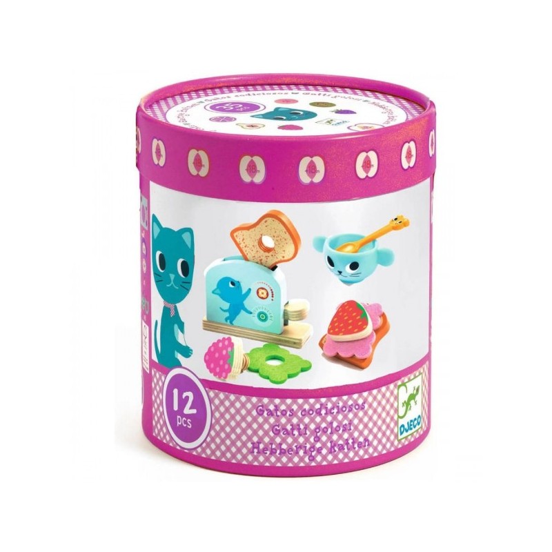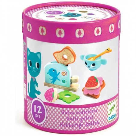 Disfruta jugando con el set El Desayuno de los Gatitos de Djeco, Mmm… ¿Hueles ese delicioso olor a tostadas tostadas y café caliente? Con esta set los/as pequeños/as se divierten preparando un rico desayuno. La tostada se mete en la tostadora, preparan deliciosas tostadas con los diferentes ingredientes y remueve el café en la taza.
