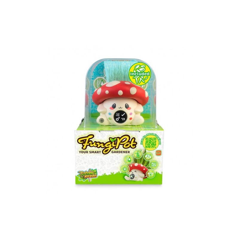 FungiPot es una mascota digital interactiva con la que los más pequeños podrán cuidar y ver crecer una planta de verdad. Incluye 3 sensores (humedad, temperatura y luz) que interactúan con la naturaleza y 7 juegos virtuales y 3 niveles muy divertidos y sorprendentes. Es muy divertido y fácil de usar además de ser muy gratificante ver como la planta va creciendo. Se puede usar tanto dentro de casa como fuera. El set incluye 1 Fungipot, 2 semillas, 2 sustratos, 1 pipeta para regarlo e instrucciones de uso.