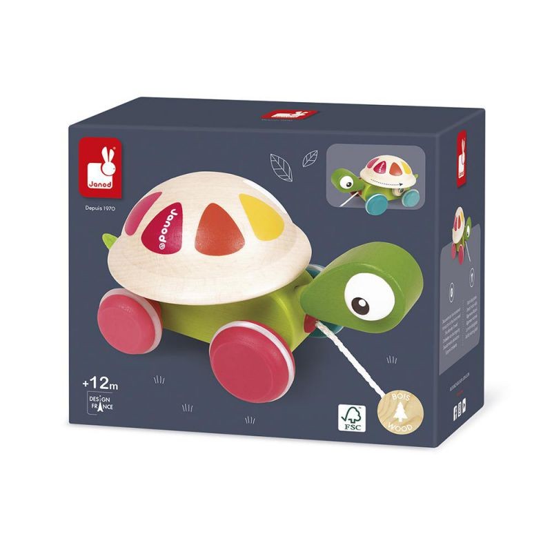 Juguete de madera para niños de 12 a 36 meses. Pintura al agua. Un magnífico juguete de aprendizaje que ayudará a su hijo a desarrollar sus capacidades motrices. Cuando su hijo pasee a su tortuga, las ruedas harán que el caparazón cambie mostrando los bonitos colores del arco iris.