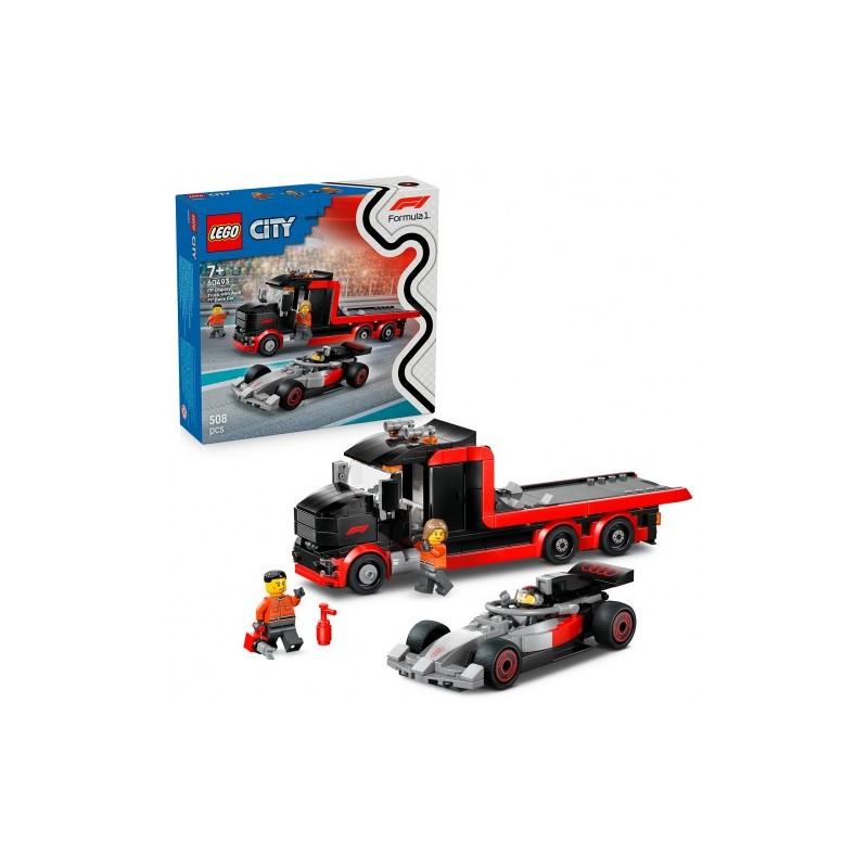 Los aficionados al automovilismo podrán disfrutar de todas sus emociones con el set LEGO City Camión de Exposición de F1 con Coche de Carreras Audi F1! Este kit de construcción de alta calidad incluye un modelo de coche Audi F1 realista con neumáticos de goma lisos y detallado habitáculo, además de un camión de juguete con cabina del conductor, compartimentos de almacenamiento, compartimento del motor, 6 neumáticos de goma y plataforma elevadora para descargar el Audi F1 de juguete. El set cuenta con minifiguras LEGO de un piloto de Audi y 2 mecánicos de boxes, así como con accesorios propios de la F1. Contiene 508 piezas.