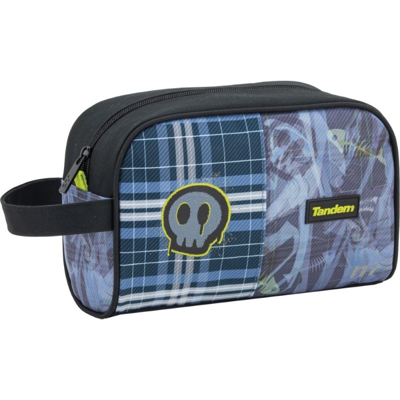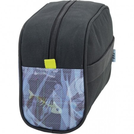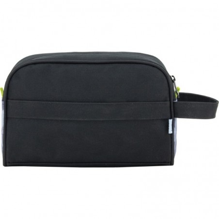 • Neceser con un compartimento grande de apertura superior con cremallera. Dispone de dos asas: Una ubicada en un lateral facilitando el agarre y la otra es una banda trasera, la cual permite adaptarse a las barras de un carro de mochila o de maleta. No ocupa mucho espacio dentro de una mochila, bolso o maleta.