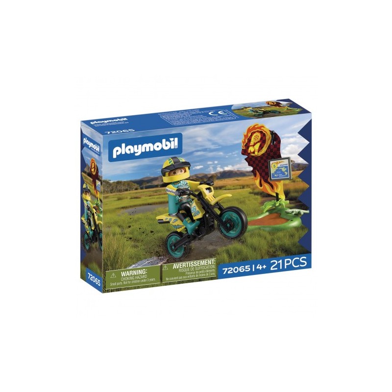 La piloto afronta la etapa pantanosa de Nueva Zelanda y salta sobre charcos gracias a la rampa. La moto compacta resiste el barro y la pata de apoyo permite consultar el mapa. El escenario con lagarto y vegetación crea una atmósfera realista.
